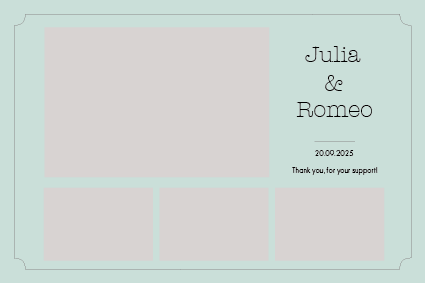 Für Ihre Fotobox stehen Ihnen verschiedene ansprechend gestaltete Standardlayouts zur Auswahl, die sich für unterschiedliche Anlässe eignen. So finden Sie schnell und unkompliziert ein Design, das zu Ihrer Feier passt.